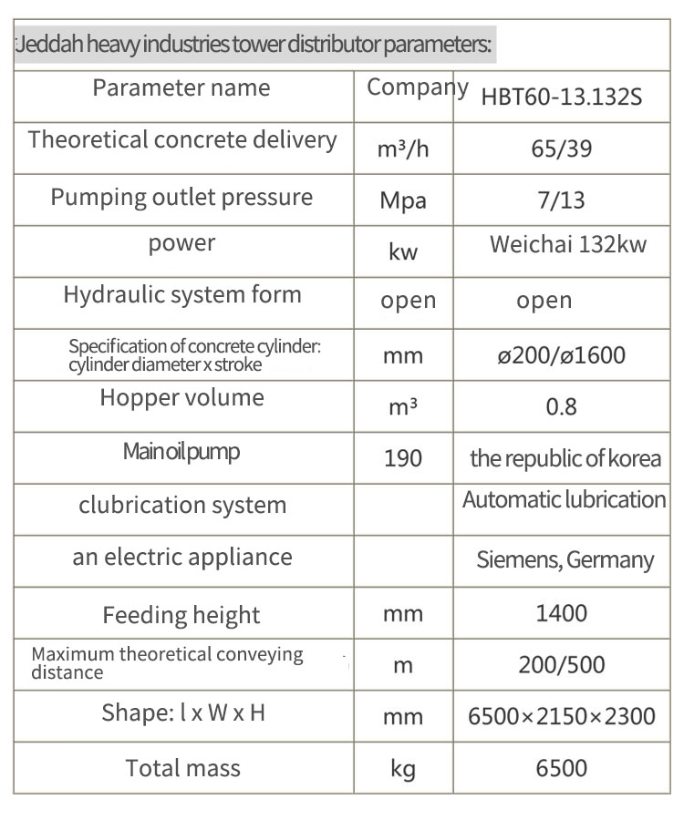 | 混聚土輸送管內徑Inner diameter of concrete cylinder | mm | 125/150 | |||||||